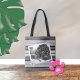 Saco preto e branco com tote listrado com fotograf