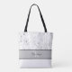 Esta linda bolsa tote botânica cinza e branca seria um ótimo presente! Personalize a frente e o verso com um nome ou mude as palavras para o que você quiser!