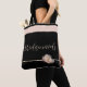 Esta bolsa tote para madrinhas é mostrada em preto com listras bege neutro acentuadas no topo e uma única peônia rosa pálido na terceira listra neutra a partir de cima. "Madrinhas" escrito em uma fonte divertida e alegre. Design na frente e no verso. Personalize este item ou compre como mostrado. Se personalizar, lembre-se de personalizar ambos os lados!