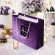 Gradiente profundo de brilho roxo e rosado. Para uma 50ª festa de aniversário. Um quadro preto e roxo com espaço para seu nome, 50 anos e uma data. O nome é escrito em branco com um moderno estilo escrito à mão. Idade em rosa.