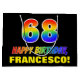 Este design de presente de aniversário colorido, divertido e alegre apresenta um grande número de "68" e a mensagem "FELIZ ANIVERSÁRIO", ambos coloridos com um padrão inspirado no gradiente do espectro do arco-íris, juntamente com um nome de destinatário ousado amarelo editável. O fundo é preto colorido. Uma bolsa de presente divertida como esta pode ser usada ao embrulhar presentes que são dados a alguém em comemoração do seu 68º aniversário. [~Z0000477]