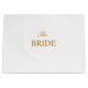 O grande saco de presentes da Noiva. Script e texto bloqueado em ouro sobre fundo branco.