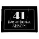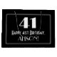 Este estilo vintage inspirado no estilo de 1920/1930s, parece um saco de presente de aniversário, design apresenta um grande estilo de deco inspirado no número "41", a mensagem "Feliz aniversário de 41ruas", um nome personalizável, e um padrão de borda que consiste em linhas finas. Ele também apresenta um fundo de cor preta. Um saco de presentes como este pode ser usado quando embrulhar presentes sendo dados a alguém em comemoração de seu quarenta primeiro aniversário. [~Z0000496]
