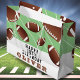 American Football Balls Divertido Aniversário de criança Grande Gift Bag. Bolas de futebol de tamanhos diferentes e fundo verde com listras. Personalize a bolsa de presente com seu nome e faça uma bolsa de aniversário de excelente para um fã de futebol.