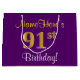 Este simples e elegante design de presente de aniversário apresenta uma mensagem personalizada como "NameHere's 91rua Birthday!" (com a "91ruas" a ter um visual falsa/imitado de cor dourada) sobre um fundo cor roxo. O nome está em texto amarelo, parecido com script, e pode ser personalizado. Uma bolsa de presente personalizada de aniversário como esta poderia talvez ser usada quando se dá um presente ou presente a alguém que comemora seu 90º aniversário. [~Z0000255]