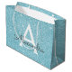 Sacola Para Presentes Grande Aqua Teal Blue Glitter & Sparkle Monograma