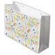 Esta bolsa de presente apresenta um padrão de flor silvestre em aquarela em tons de verde, amarelo, laranja e azul.