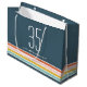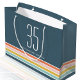 Transforme o seu presente de aniversário com este saco de presente retrô de na moda! Um simples design moderno com faixas horizontais, num esquema de cores de cinzas azuis escuras, brancas, azuis-verdes, amarelo-mostarda, rosa e cor de laranja-pêssego. Basta adicionar o nome do destinatário e a idade celebrada para torná-lo único. Perfeito para todas as idades e anos especiais. Feito com papel de qualidade superior em uma escolha de acabamento mate ou brilhante.