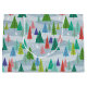 Saco de presente único com árvores retroradas de várias cores em colinas de neve com coelhos brancos. Os modernos assumem o estilo do século médio, perfeito para presentes de Natal ou outros presentes de inverno. Design original, copyright Jennifer Kistler 2021.
