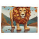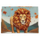 Autumn Leaves Male Lion, esta design criativa apresenta um leão masculino feito inteiramente de folhas do outono em um lago com uma bela reflexão.