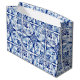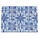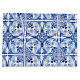 Este produto tem um design intricado com fundo azul escuro e padrões ornamentais brancos. O design lembra os estilos tradicionais de cerâmica ou porcelana, que podem interessar a quem aprecia a estética clássica ou vintage.