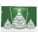 Saco os presentes de Natal com este Saco de Presente de Árvore de Natal Verde e festivo. Design de saco de presente apresenta um trio de neve coberta de árvores de Natal decoradas contra fundo verde e flocos de neve caindo. Itens adicionais de presentes e feriados disponíveis com este design também.