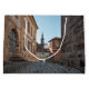Fotografia da igreja "Rua. Stephan" vista da rua cobblestone "Pfarrgasse" na antiga cidade de Bamberg, Alemanha.