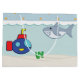 Divirta-se um pouco com este design de banheira, que tem o tema do tempo de banho apresentando um tubarão sorridente e um grande submarino redondo flutuando numa banheira que transita da parede de azulejo azul mundana, decorada com estrelas de laranja, para um fundo oceânico arenoso imitando o imaginário fantástico de uma criança brincando com brinquedos. Personalize a mensagem temática da alga com o seu pequeno gênero em breve ou uma mensagem da sua escolha de criar um saco de presente verdadeiramente único para um novo bebê. Verifique a coleção de Ricos de Tempo de Banho do cheio para mais ofertas e produtos de excelente para um chá de fraldas ou para o pequeno da sua vida.