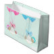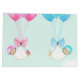Bolsa de presentes de gêmeos bebês, com menina e menino debaixo de balões rosa e azul.