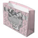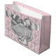Sacola Para Presentes Grande Bebê Menina Damasco Rosa Prata