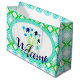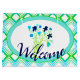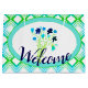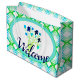 Um saco de boas-vindas de evento em marinho azul floral, lacre e verde limão, fundo branco pode ser comutado para qualquer cor, e o texto pode ser personalizado para qualquer mensagem, todos os elementos são removíveis.