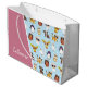 Enrole os presentes da sua menina com esta bolsa de presente personalizada com o nome e os animais bonitos nos óculos de sol! Os animais estão em um padrão na frente das bolinhas e incluem tigre, cão, cordeiro, coruja, girafa, pinguim, hamster e frango. Isso também faria uma bolsa de presente adorável para um garotinho que ama animais!