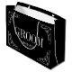 Saco de presente de noiva de festa de noiva coed para noiva. Adicione seus próprios favoritos para festas e doces. Pequenos, médios e grandes tamanhos. Bolsas personalizáveis de cadeia com data de casamento. Adicione seu próprio nome opcionalmente. Cores pretas e brancas ou personalizáveis. Modelo de tipografia elegante com gráficos de canto de borda suave. Criar belas bolsas para casais recens casados, convidados, damas de honra, noivos, padrinhos de casamento, família, etc. Criar os seus e os seus.