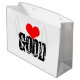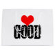 A palavra Bom e um coração vermelho acima da palavra. Camisas engraçadas, presentes, impressões, lembranças por diversão e bom humor.