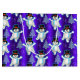 Este saco de presentes de Natal muito bonito, azul e branco, tem um padrão de pequenos bonecos brancos, bonitinhos, dançando na neve cercada por árvores de Natal prateadas. Há um azul real muito colorido no fundo.