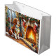 Sacola Para Presentes Grande Brittany Spaniel Fireplace with Christmas Lights