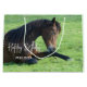 Saco de presentes com uma bela fotografia, com um belo cavalo marrom, deitado na grama, com aparência pacífica e contente.