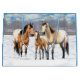 Uma família de cavalos appaloosa com pele de baleia no seu curral de rancho de inverno.