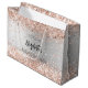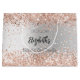 Um fundo com aparência de prata falso decorado com confetes falsos em rosa dourado, brilhos. Personalize com uma data e o nome da noiva.