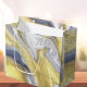 Sacola Para Presentes Grande Cinza Amarela Luxury Efeito Marble Dourado Natal