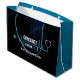 Um estetoscópio azul e branco, único e elegante, em forma de pulsação, com nome personalizado para graduação, classe Ano de um formando 2023. Segundo grau personalizado clássico ou formandos Gift Bag para o estudante formando. Personalize com a sua turma de graduação, o nome da criança e a escola sob o boné de formando negro. Tipografia de ouro elegante para um pai.