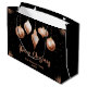 Celebrate the season in style with this elegant black Christmas gift bag featuring five rose gold hanging ornaments, scattered golden stars, and customizable text. Add your family name and year for a personal touch that elevates any holiday gift. Perfect for festive packaging, party favors, or under-the-tree presentation.