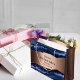 Um fundo falso de cobre com agata azul marinho, pedra mármore. Personalize e adicione seu texto. O nome é escrito com um moderno estilo escrito à mão.