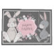 Bonitos coelhos de Páscoa com um quadro floral cor-de-rosa