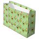 Saco de presente de Natal divertido com um padrão de desenhos animados sorridentes vestindo chapéus de Papai Noel em um fundo verde. Bela Comida Santa Hat Avocado Natal Grande Gift Bag Sweetsham Comida Art | ©Melissa Patton — Artista/Ilustrator