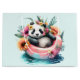 Saco de presentes com uma imagem de verão adorável. Um design de aquarela com um panda preto e branco sentado em uma piscina na água. Cercado por flores silvestres bonito. Um urso muito frio.