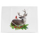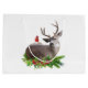 A red cardinal stands on the back of a stag surrounded by holly and evergreens on this festive holiday gift bag.