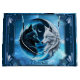 Duas cabeças majestosas de lobo, uma negra e uma branca, viradas uma para a outra e exuando uma atmosfera mística. Este design simboliza a dualidade da luz e da escuridão, da força e da sabedoria, bem como a profunda ligação com a natureza e o sobrenatural