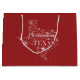 Saco simples de presentes de Natal com "É Natal no TEXAS" num fundo vermelho em losango, e esboçado com flocos de neve, estrelas do Texas e pontos.
