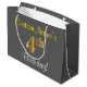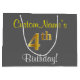 Sacola Para Presentes Grande Elegante, Cinza, Faux Dourado 4.º Aniversário; Nom