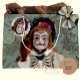 Este saco de presentes, que chama a atenção, mostra o tradicional Dia 'La Catrina' do rosto morto, feito digitalmente modelado na face carinhosa de uma velha boneca vitoriana da minha coleção pessoal. Um impressão de damasco dourado na seda fornece um fundo elegante. Está disponível um cartão de saudação correspondente, bem como convites para as reuniões amigáveis da sua família para acolher as almas dos que partiram. Use esta bolsa para segurar um presente de anfitrião ao assistir a uma festa da Día de Muertos, ou para trazer doces caseiros para as crianças. Deseje-o para qualquer ocasião!
