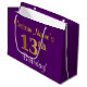 Sacola Para Presentes Grande Elegante, Roxo, Faux Dourado 13 Aniversário + Nome