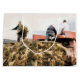 Um design de arte de fazendeiros ocupados debulhando aveia em uma máquina de debulhar vindima.