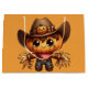 A Cute Orange Large Gift Bag For Fall Designed With A Cute Western Pumpkin Scarecrow
