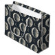 Elegante bolsa de presente com fase da lua e padrão celestial apresentando luas crescentes, estrelas e detalhes lunares radiantes em um fundo escuro. Ideal para amantes de astrologia, entusiastas da lua, buscadores espirituais, observadores de estrelas e fãs de estilo celestial místico.