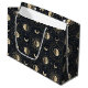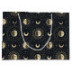 Elegante bolsa de presente com fase da lua e padrão celestial apresentando luas crescentes, estrelas e detalhes lunares radiantes em um fundo escuro. Ideal para amantes de astrologia, entusiastas da lua, buscadores espirituais, observadores de estrelas e fãs de estilo celestial místico.