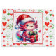 Um bonitinho cartoon axolotl temeu o saco de presente de Natal para uma criança. Um machado bonito vestindo um chapéu de Papai Noel cercado por corações e flocos de neve segurando um presente.