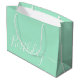 Este grande saco de presentes apresenta uma elegante tipografia de Feliz Aniversário em branco sobre fundo de menta.