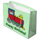 Sacola Para Presentes Grande Feliz aniversario com trem e o menino de ondulação
