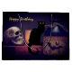Esta bolsa de presente de aniversário feliz do Dia das Bruxas apresenta um gato preto assustador e um crânio assustador com uma garrafa de poção. -